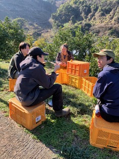 甘夏の収穫作業はまさにチーム