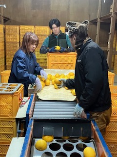 急遽、収穫した甘夏の選別作業を
